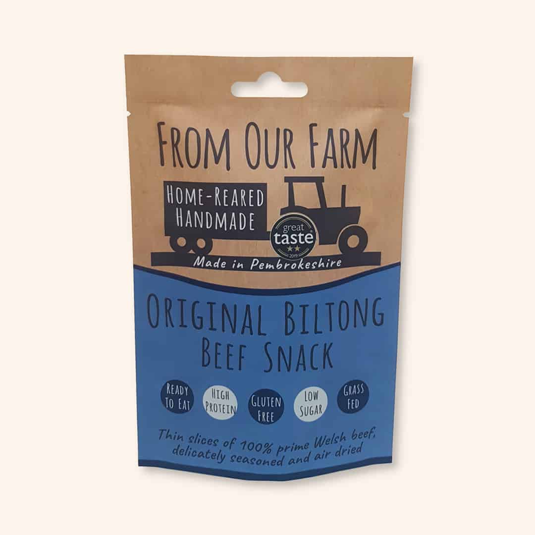 From Our Farm’s gourmet biltong, made from prime cuts of PGI Welsh beef.