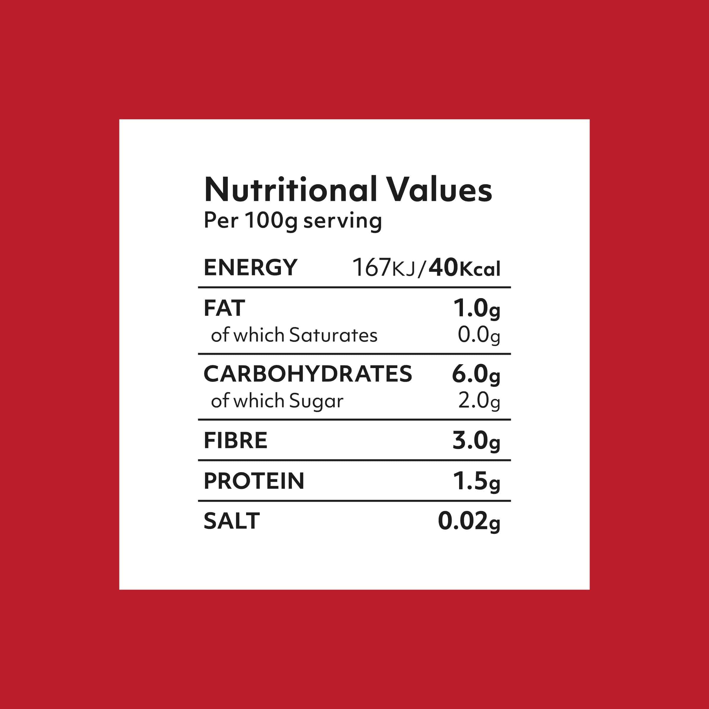 | Energy / kcal | 40kcal |